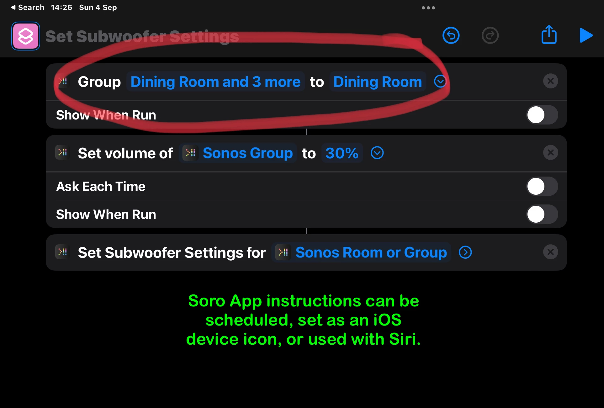 But now it seems silly/lack of respect for finite resources, not to use this each night when I know they will not play. However, - I then run into the regrouping issue. Before I can start playing music, manually or automatically, - I need to fiddle with the Sonos App to regroup all the speakers.