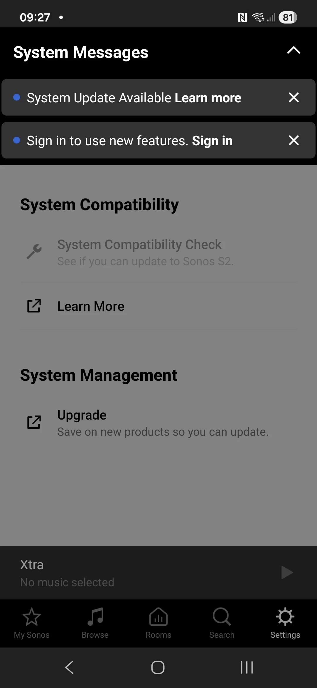 I have recently purchased a Beam Gen2 and a couple of Era 100s. My existing system is S1 so I need to upgrade if I want them to all play happily together. This I am failing to do. I have removed my 2 s1 only Connects but when i run the s2 Update it finds the system but is unable to update it.