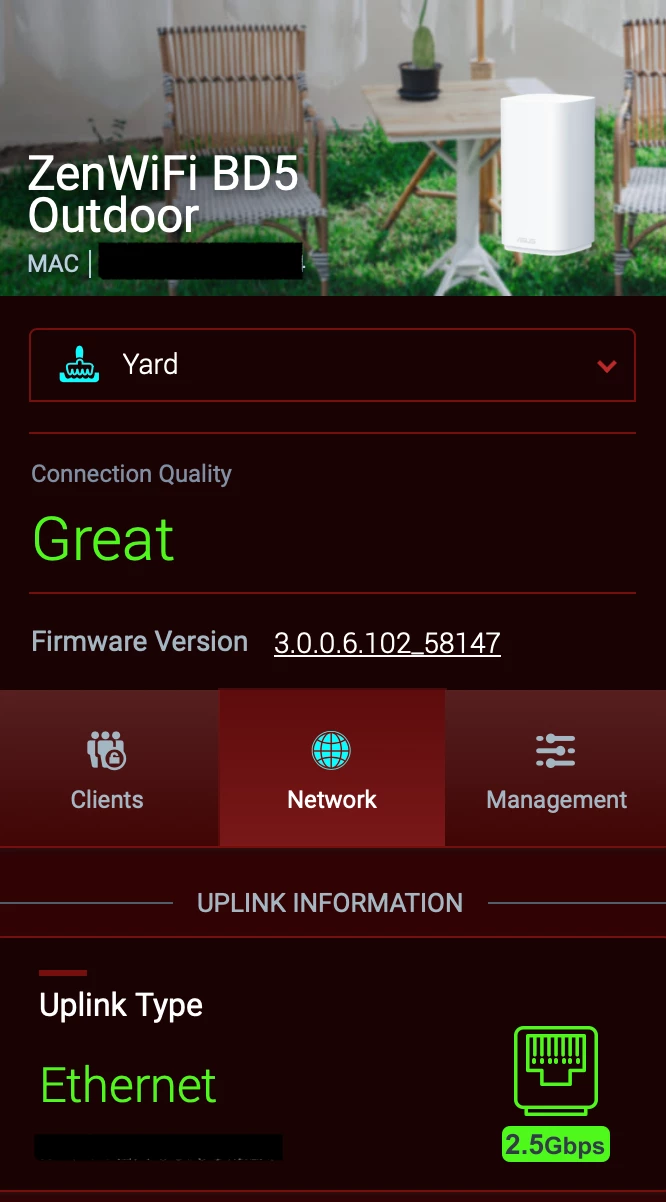 I recently installed one by ASUS; the “ZenWiFI BD5” Outdoor Router. It’s a full-blown dual band 2.4Ghz/5Ghz Wi-Fi 7 router that I converted to a satellite node on my existing ASUS AiMesh network.