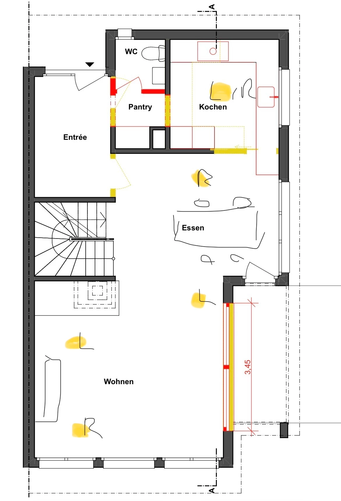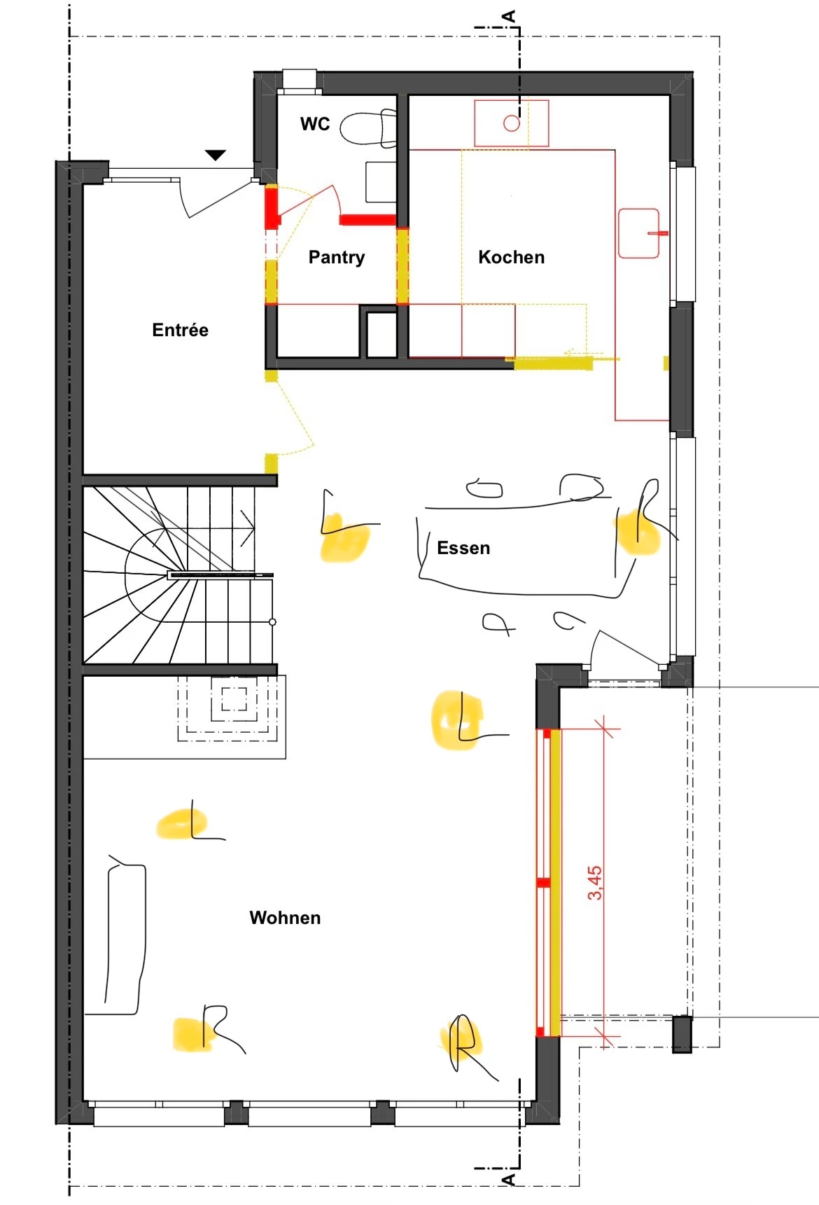 - 2 speakers continuing left/right of the dining table (left matching left of living room zone)