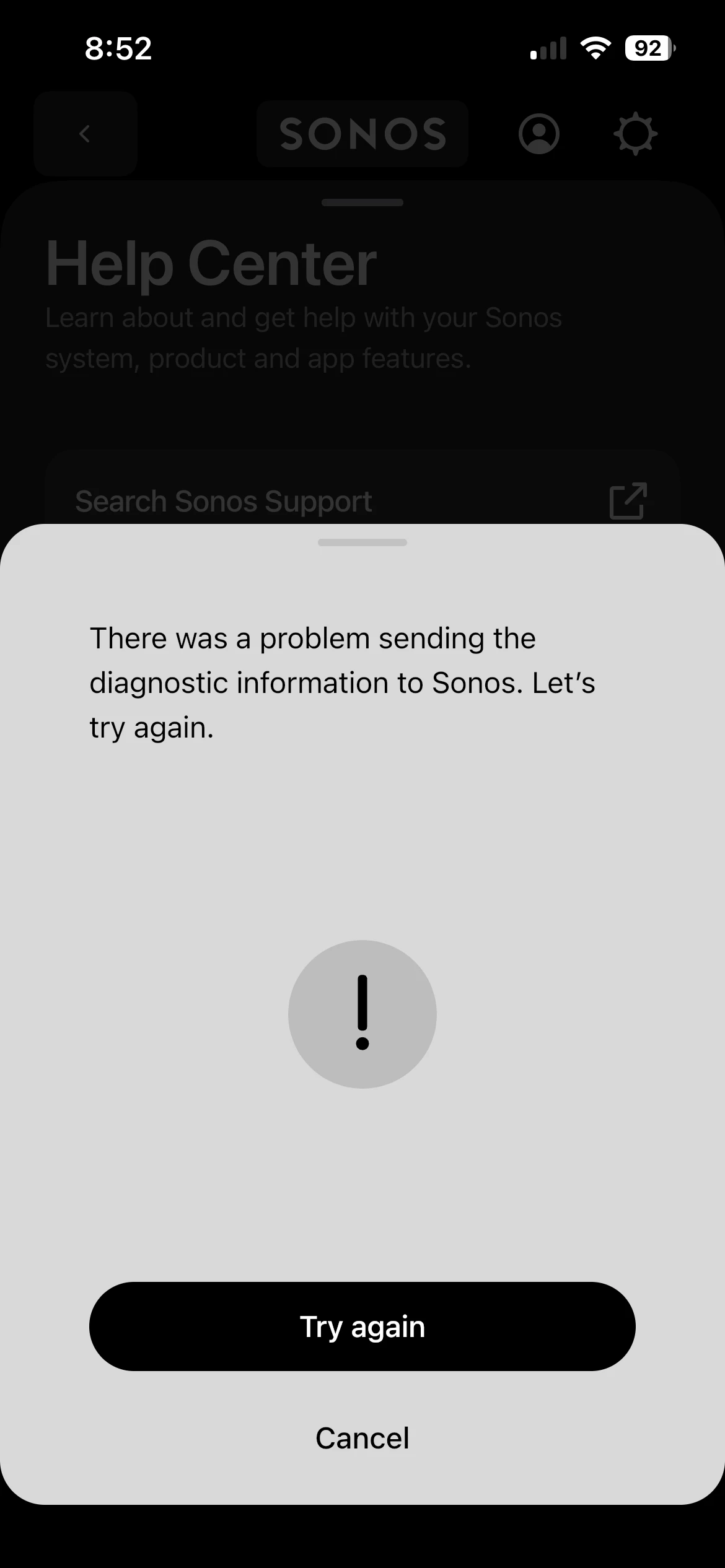 Can’t submit diagnostics report. Spotify not working through Sonos S2 or Spotify Connect. This is a constant problem.