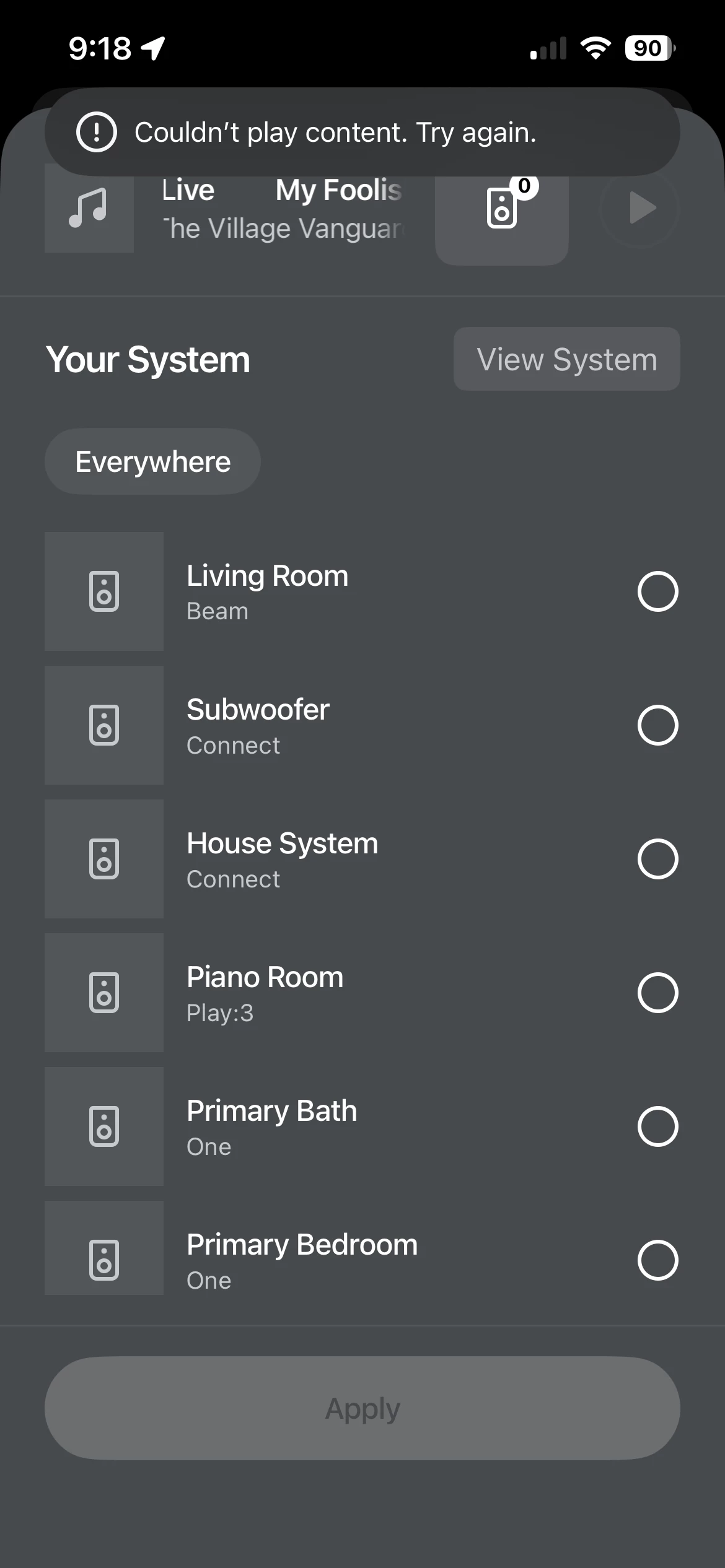 Note: Do not factory reset Sonos speakers. If the issue continues I suggest loading the app on a different device if possible (maybe borrow a friends if that’s the only option) to see if there’s same problems occur. Sonos “live person” tech support will not open until Monday.