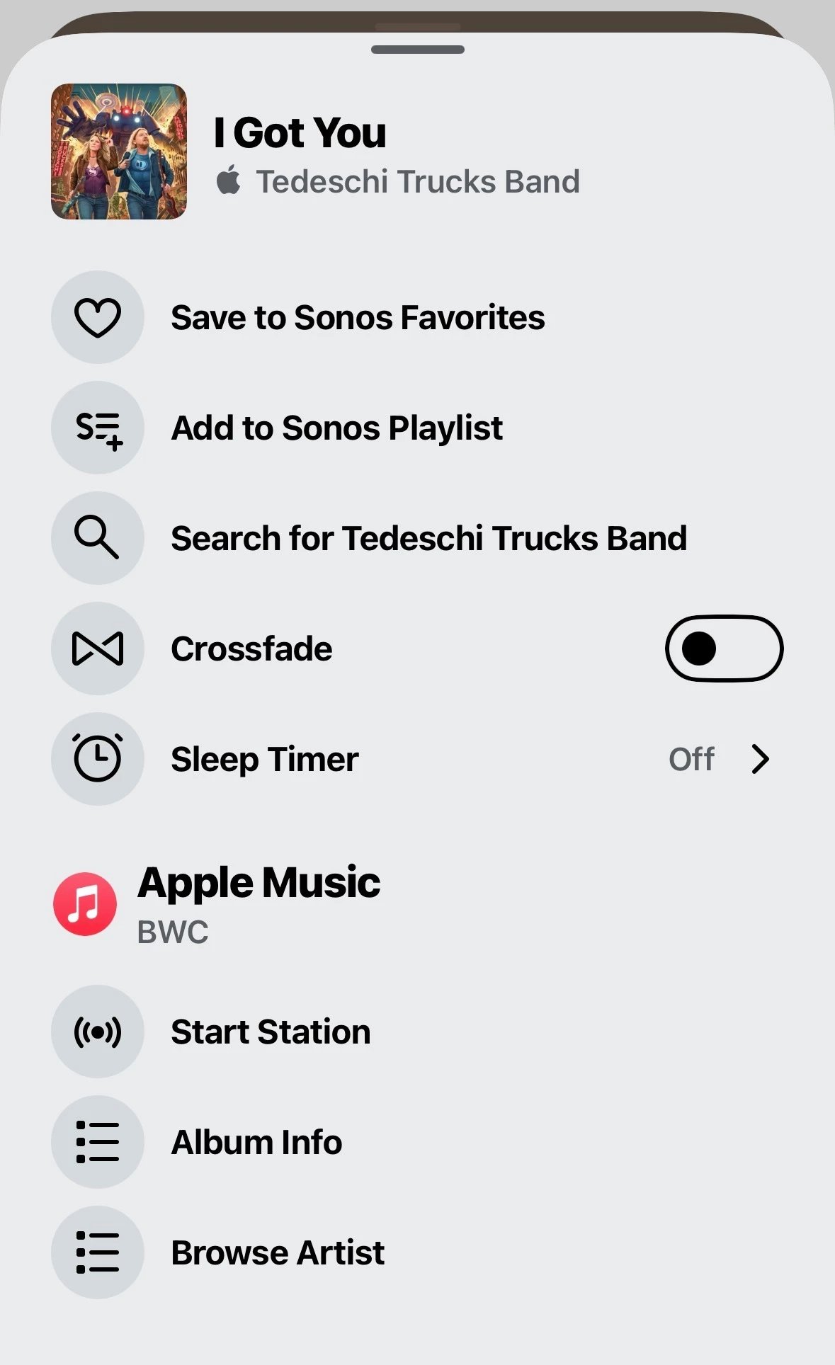I tried the same track as you and get Start Station. But notice I’m missing crossfade and sleep timer.