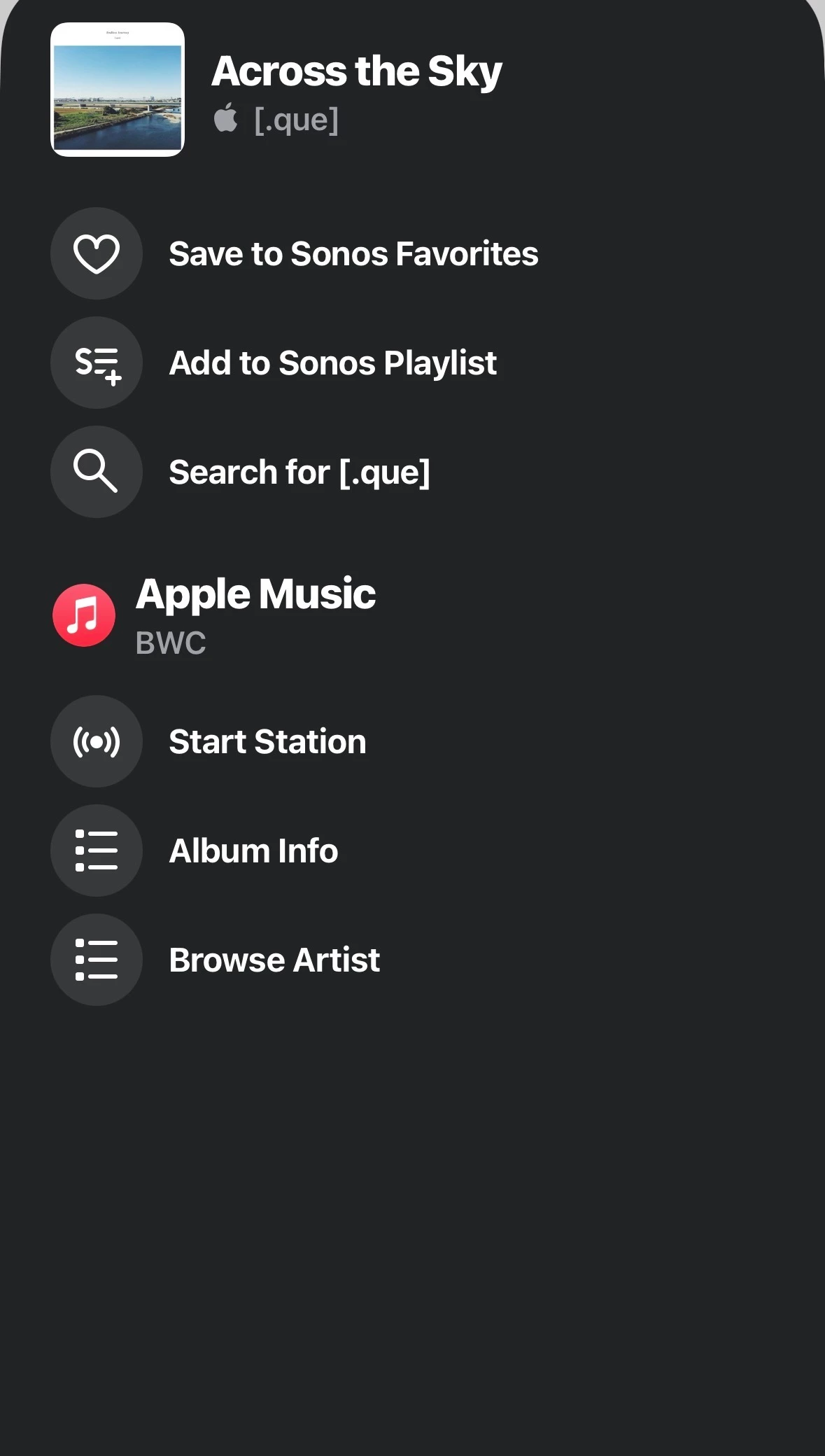 • How are you getting the pop-up menu? Is it by selecting a track from the Queue or while using Search?