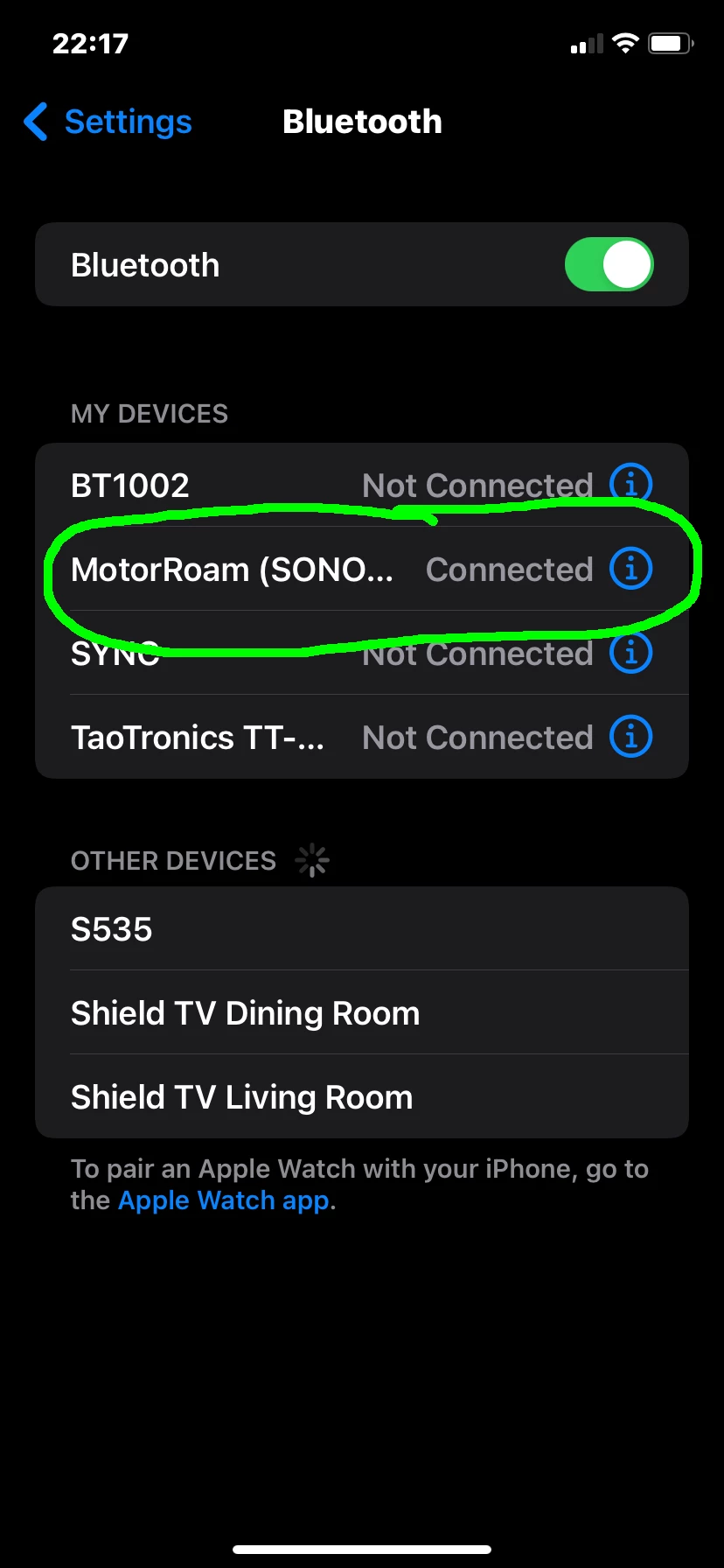 See example screenshot taken from an iPhone XR Bluetooth list of connections.