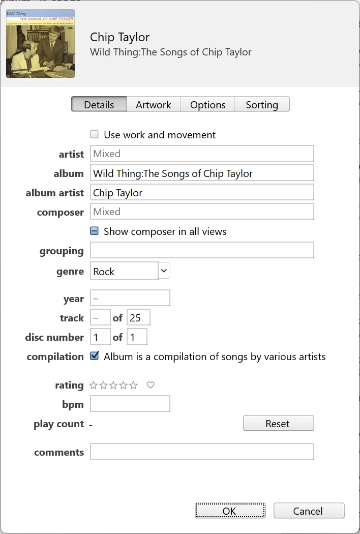 Well, I told iTunes that it wasn’t a compilation, and that fixed that record.