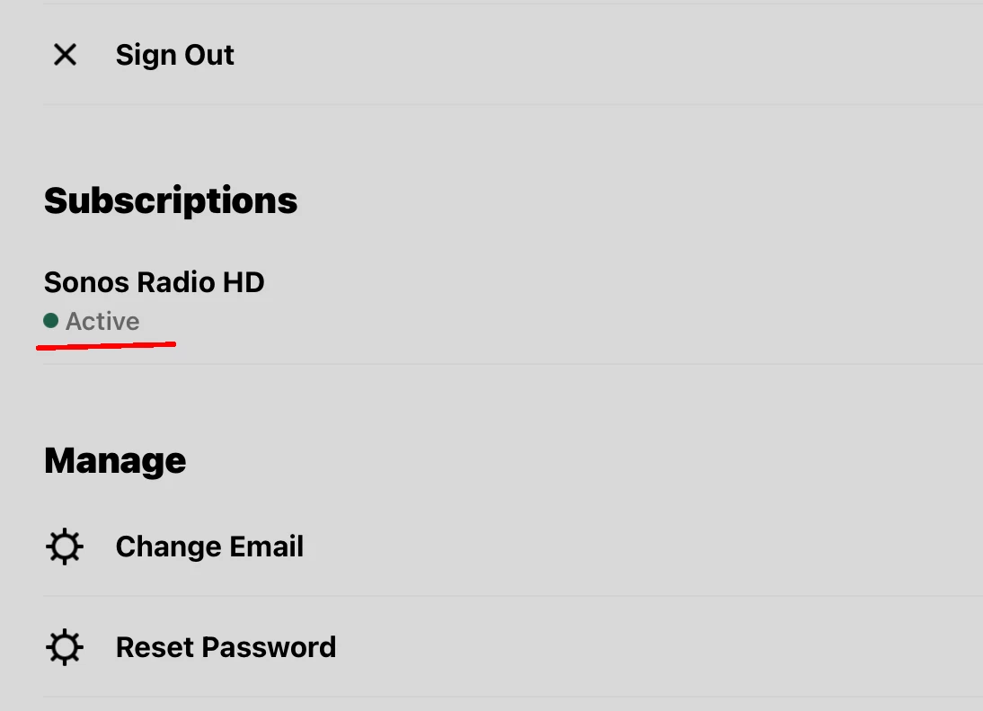 Why does my Sonos app show that I have a subscription for Sonos Radio HD when I don't?