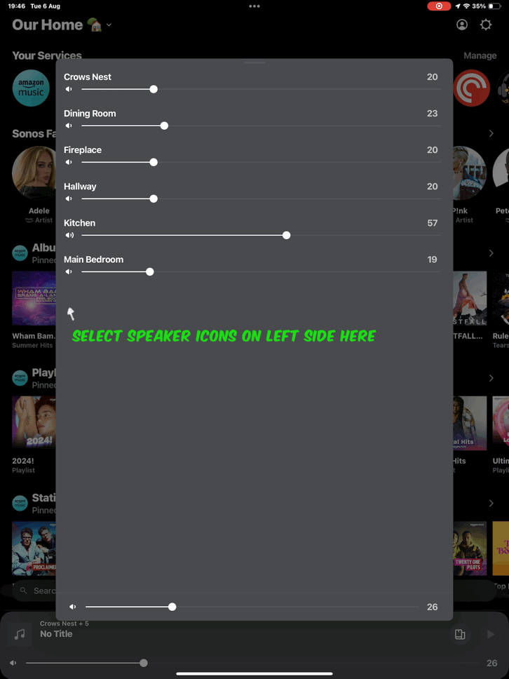 • B: when the now playing component is small in the bottom of the screen I can tap on the speaker icon. It mutes and also brings up the volume control for the individual grouped speakers. I can mute individual speaker in this screen.