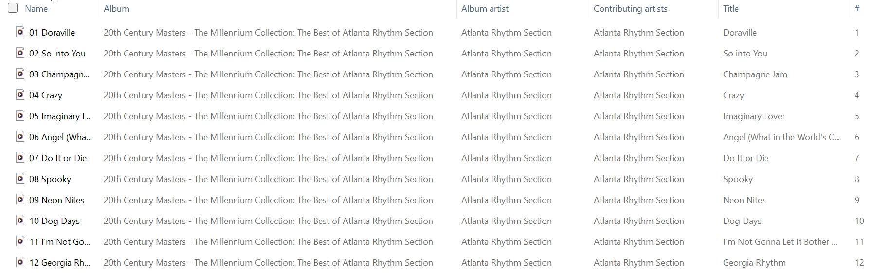 Multiple values for Title and # as expected, but not for Album and Album Artist.