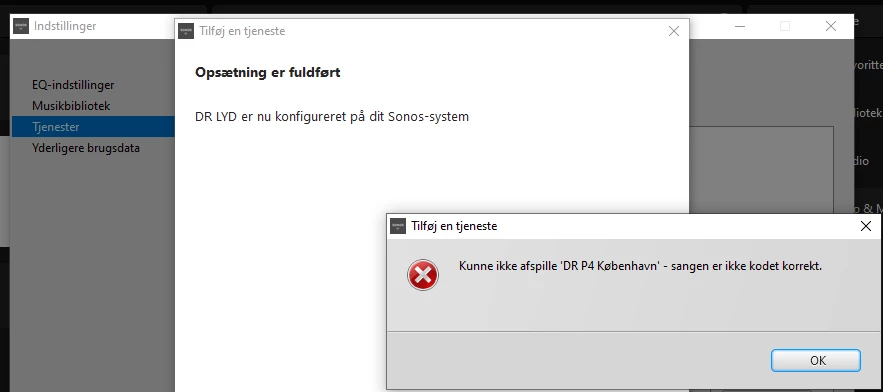 Både når jeg tilføjer tjenesten eller vil afspille en DR kanal får jeg denne fejl.