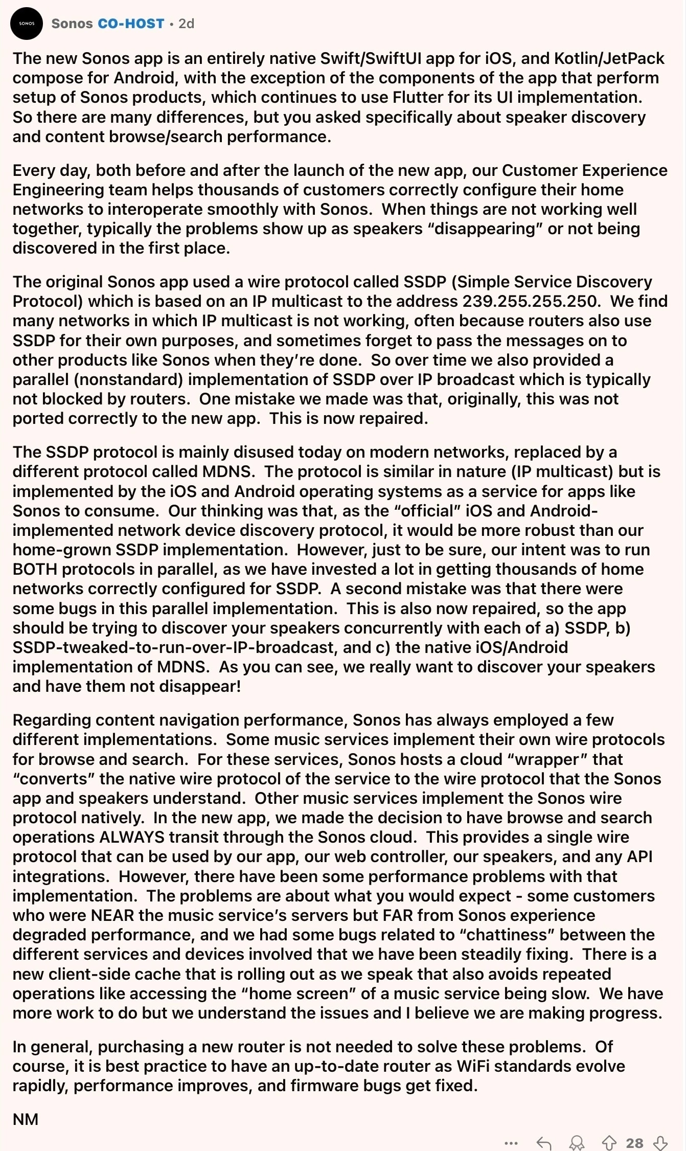 my thoughts are that anyone with that type of issue ‘perhaps’ could have a multicast ‘device discovery’ issue across their network that’s preventing the controller device from communicating with their Sonos speakers. See attached re: SSDP/mDNS.