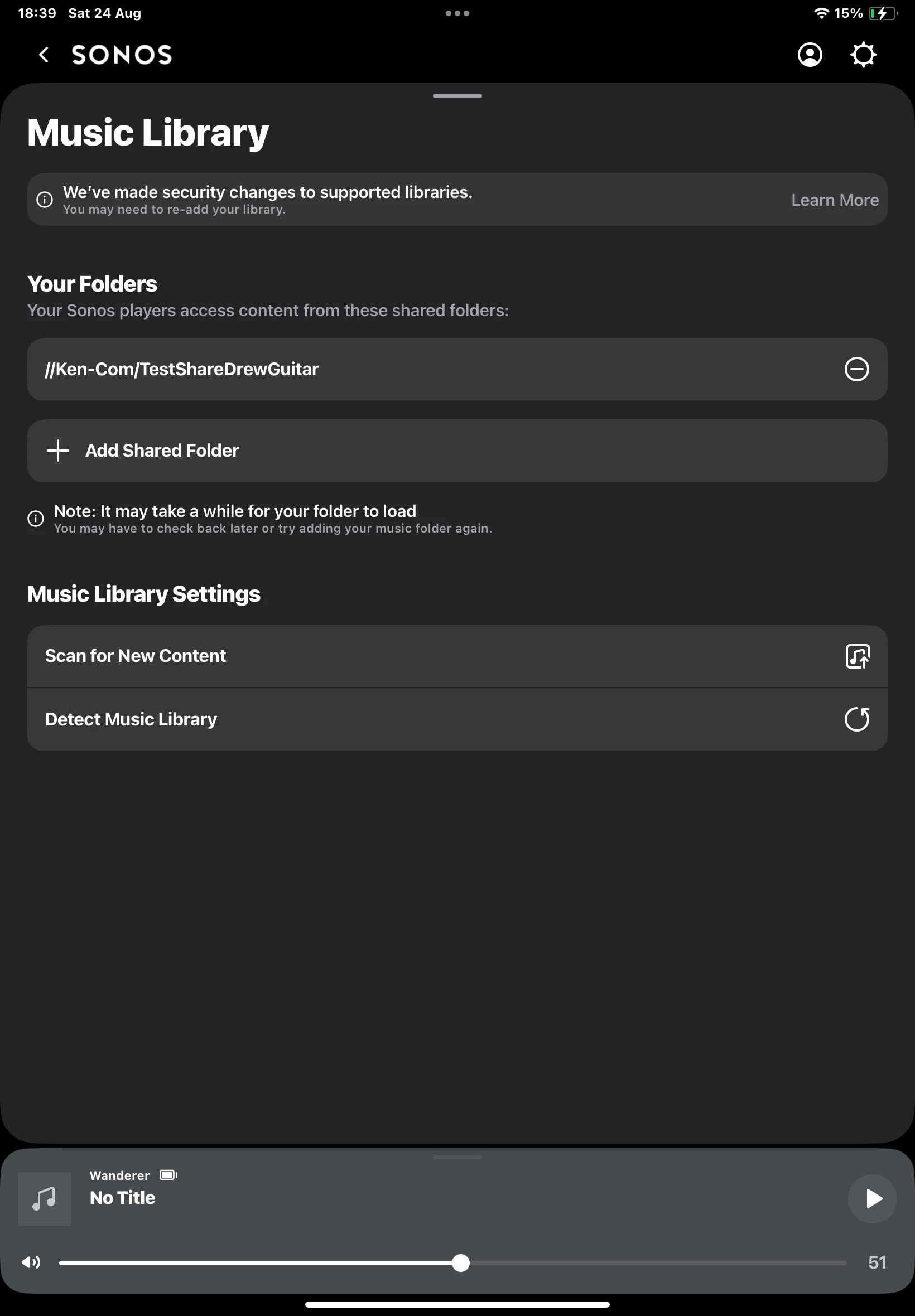 My music library is still not functional, looking for help or ideas. I’ve got it successfully added to the app. When I click “Music Library” it takes me to the categories (Artists, Albums, etc.). From there, anytime I click on a category, I receive a “something went wrong” error message. Every once in a while (with no discernible pattern that I can see, it will show my library after clicking on Artist. When it does, if I click on the artists’ name, it then gives me the “something went wrong” error message.