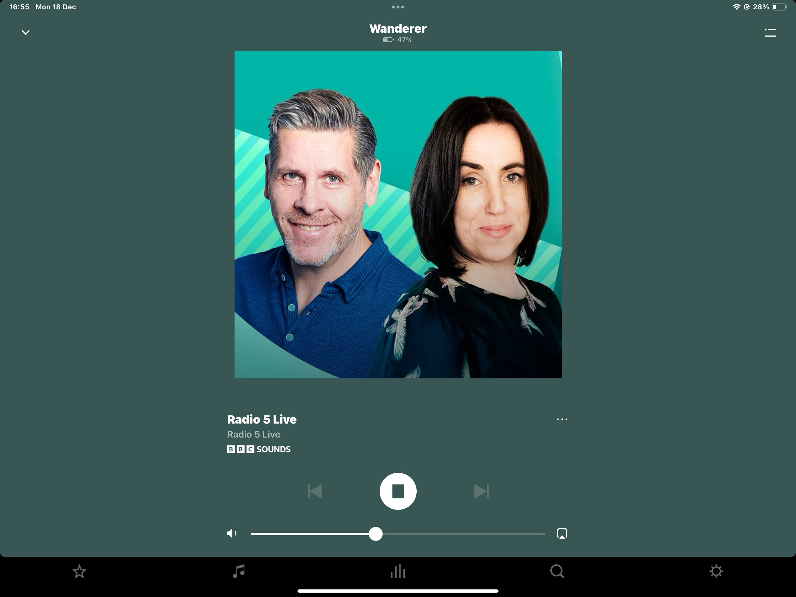Playing live radio....... Especially BBC News Live Radio 5 & Radio 4