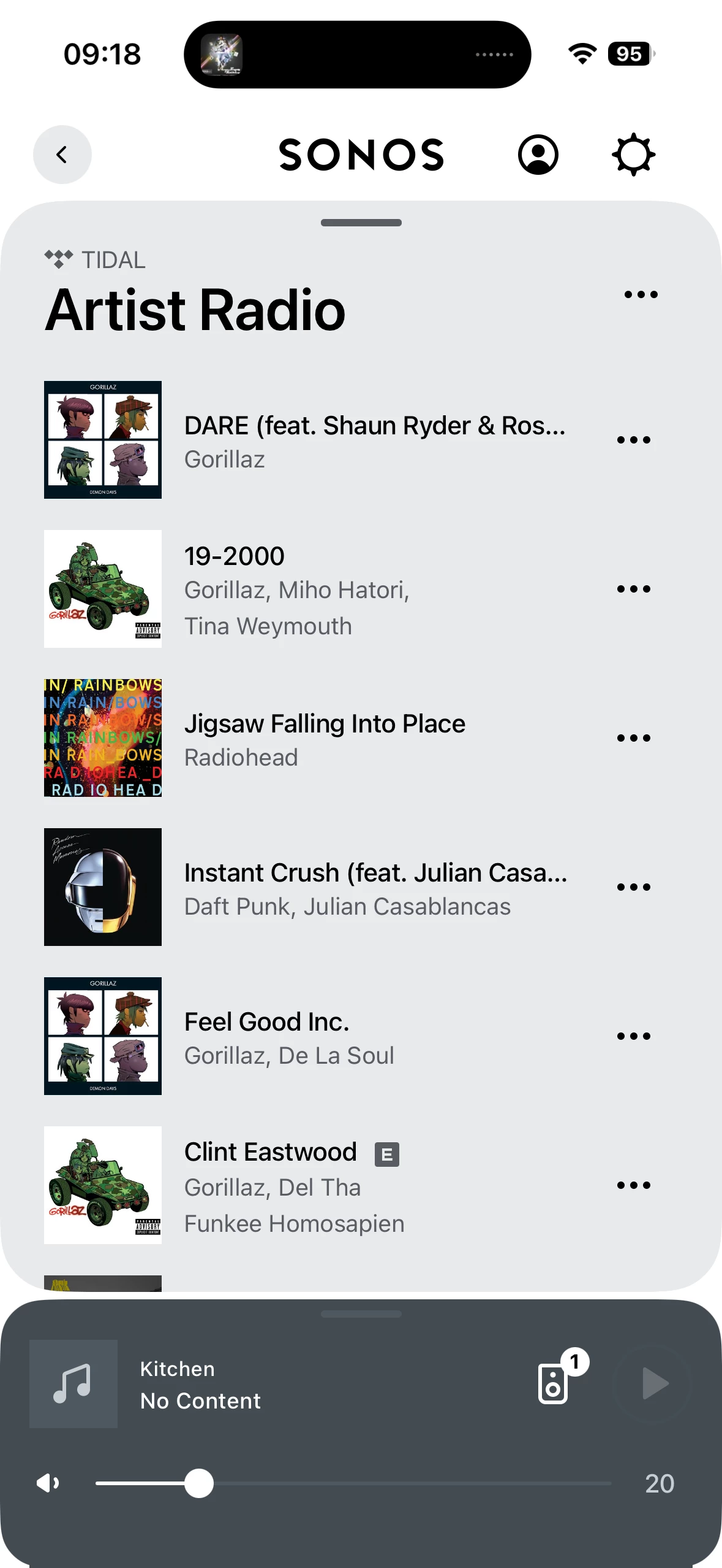 Just moved to Tidal from Spotify and now I can’t do artist radio in the Sonos app.