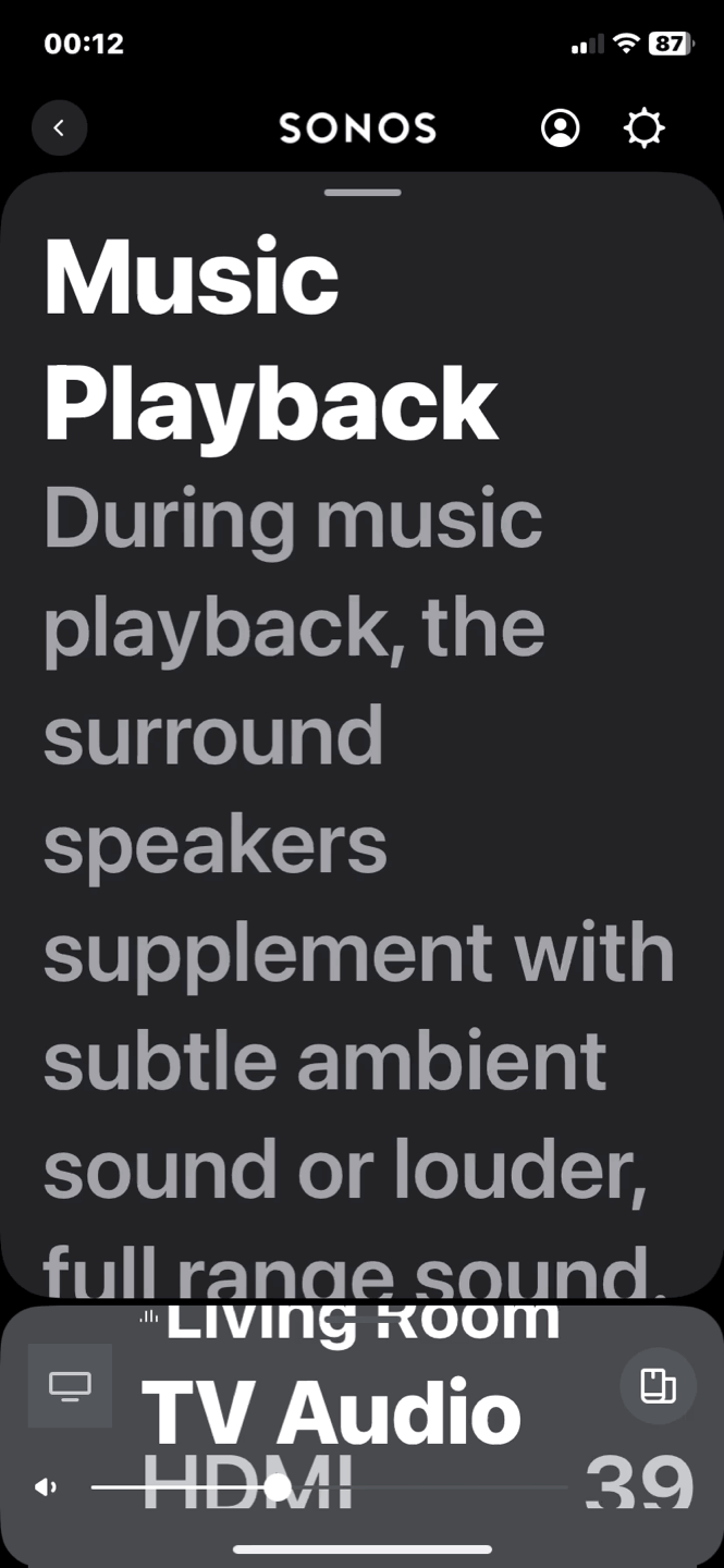 I’m suspect that the truncating of text on your device has anything to do with the Sonos app. I have a iPhone 15 ProMax and the following slides detail how I have maxed the Display Settings for Text and Zoom. The last slide shows the Music Playback section for surrounds in the Sonos App. The rendering is in full complete text and graphic (readable)…but just blown waaay out of portion.