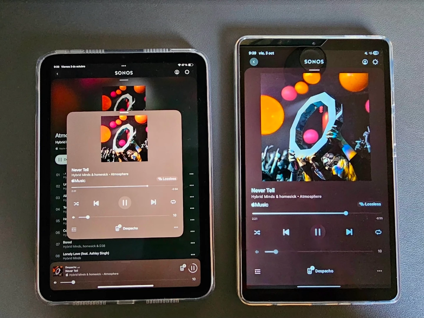 Here you have a comparison between the iPad mini and Galaxy tab A9 now playing window cover size.