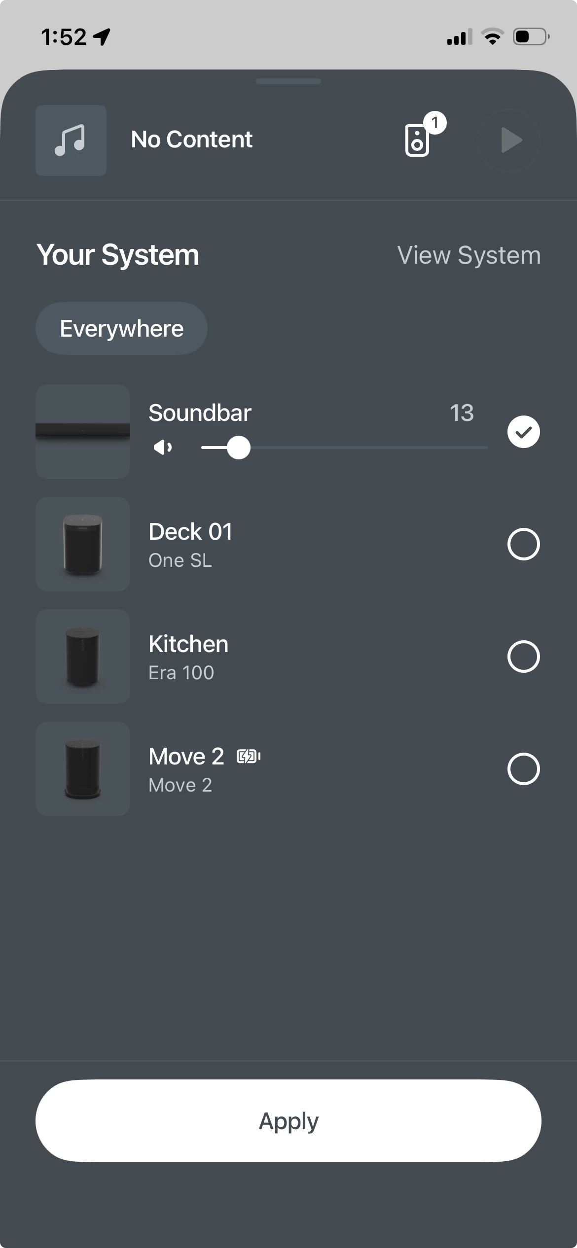 Now I have added a Move2 the system plays all speakers when switching from music to TV which makes for really echoing sound. Any reason for this?