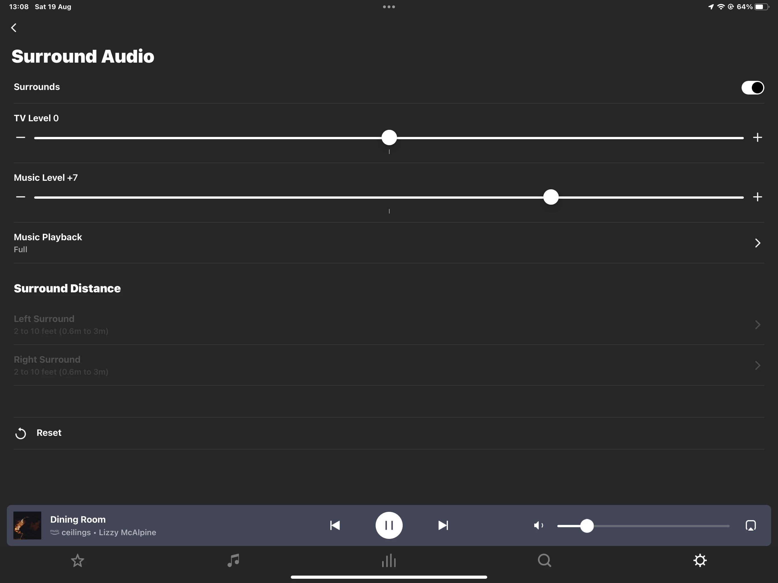 If playing 2.1 TV/Music audio then perhaps see if the TV/Music slider controls in ‘Surround Audio’ in the Beam room settings will help you achieve a wider soundstage. For music audio, also set the Music Playback to ‘Full’ rather than ‘Ambient’ - see screenshot for the area of the App I’m referring to.