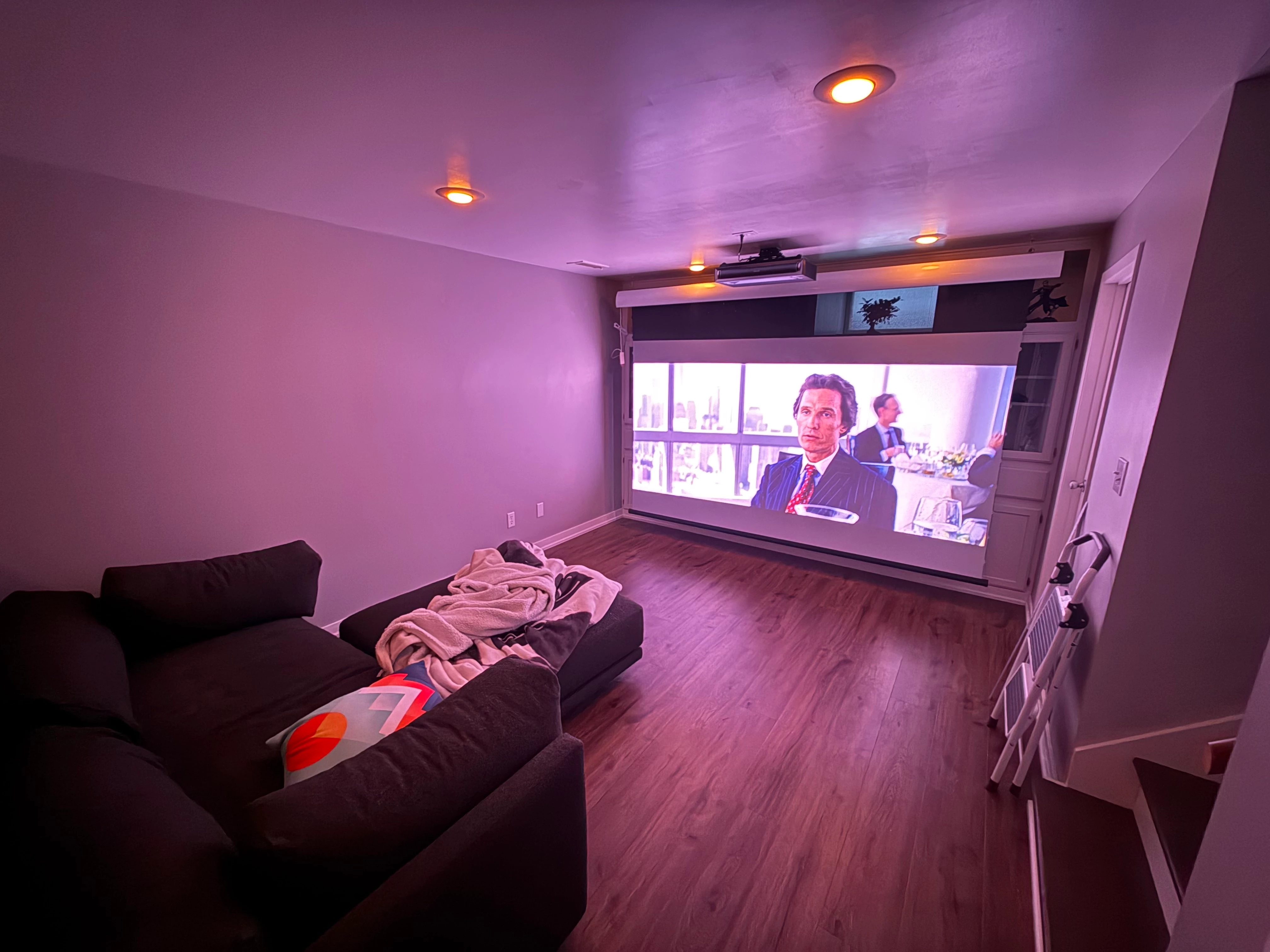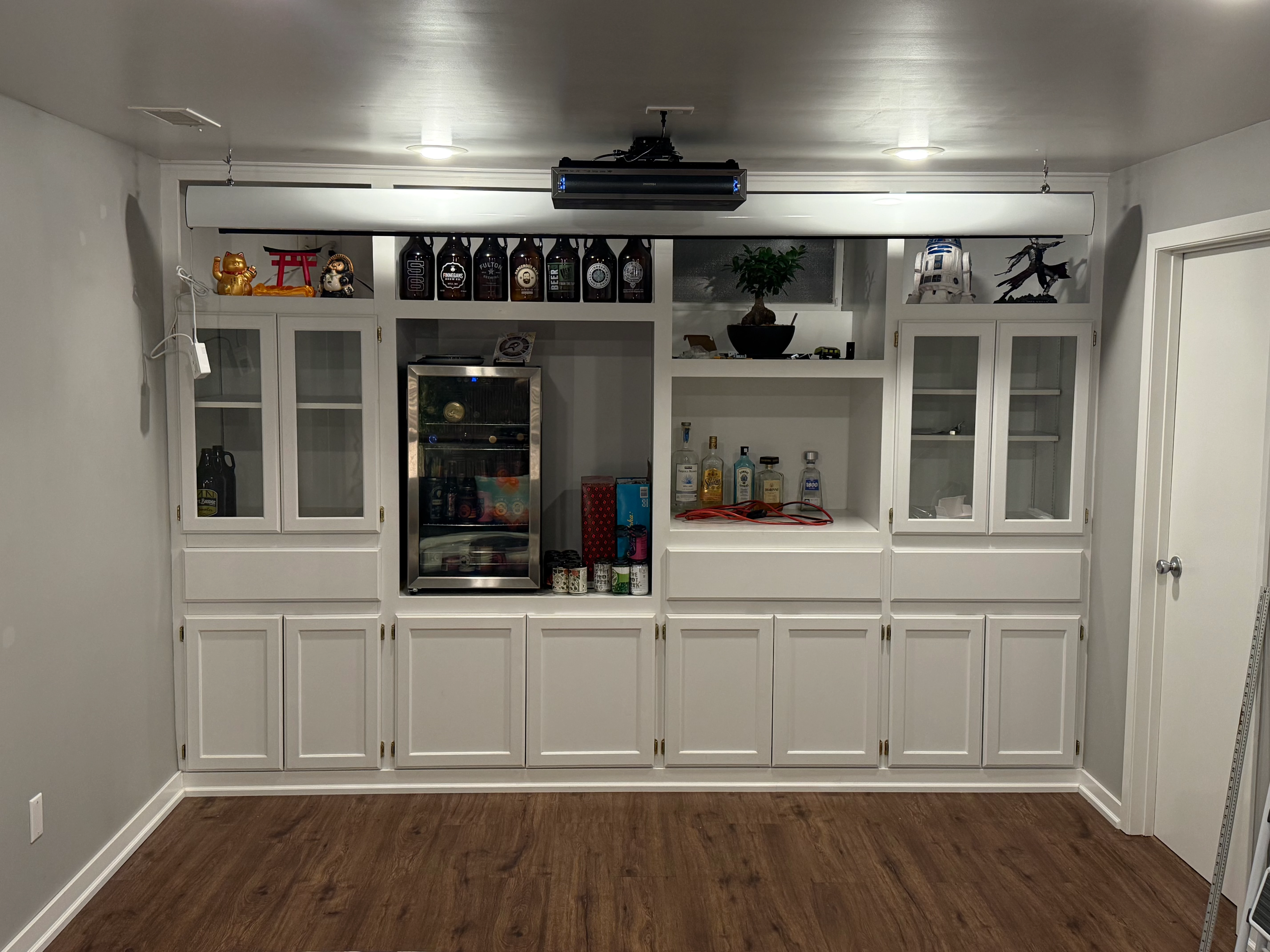 i have the sonos arc and i put in a home theater setup. i have no idea where to put the sonos arc because there’s cabinetry behind it that is not perfectly symmetrical. where would you put the sonos arc in this setup? is there a way to hang it from the ceiling? can i place it on the cabinets but off center? the seating is on the left already.