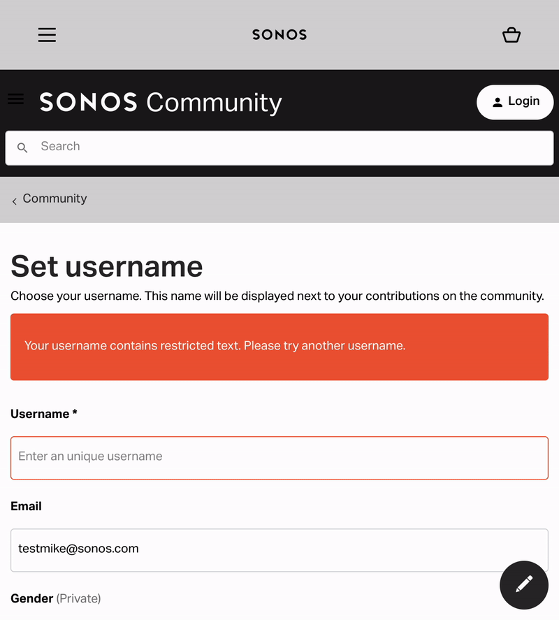 Getting started on the community requires you to have a sonos.com account that you then use to log in and set up a user profile on the Sonos community. First part of the gif is creating your sonos.com account, and the second part is setting up your user profile, by choosing a username and accepting the terms and conditions
