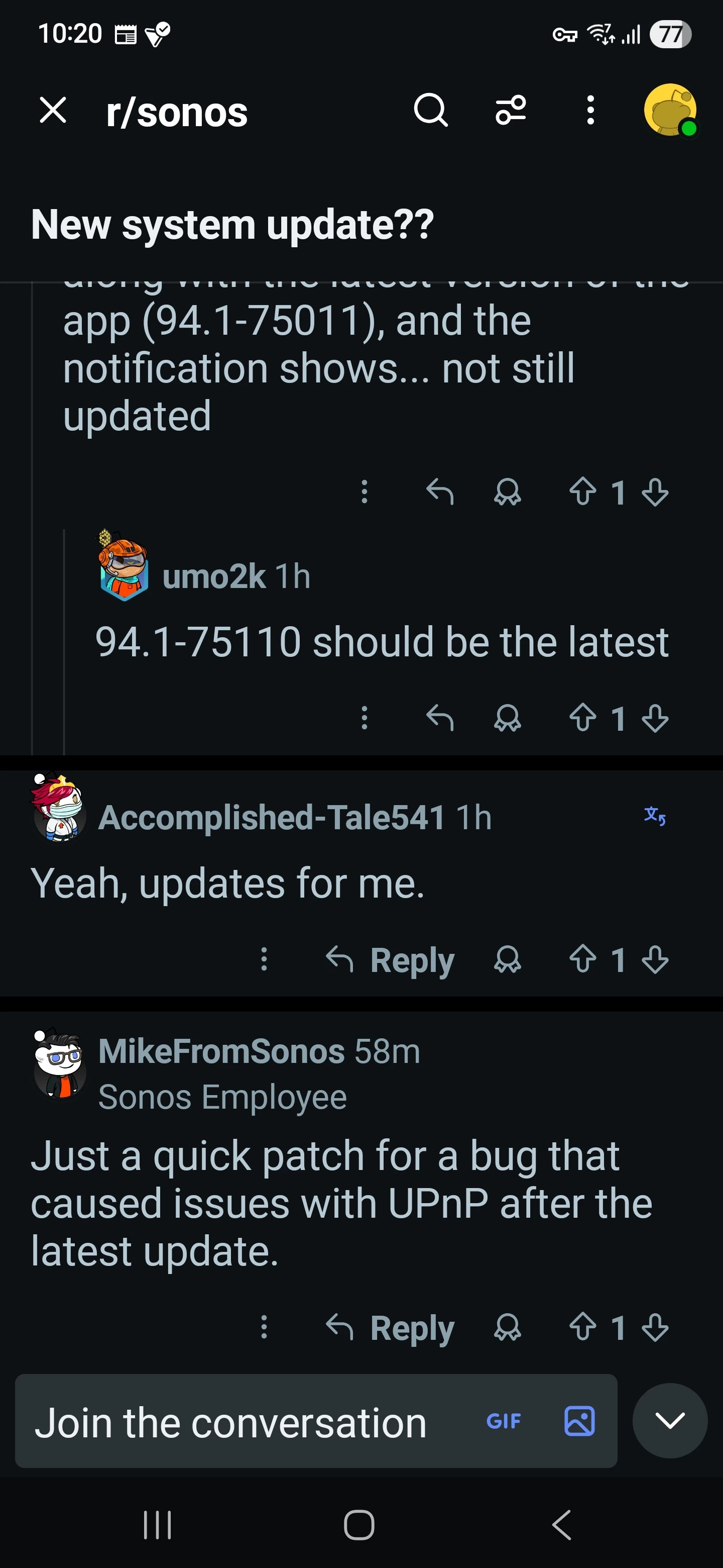 Iโ€™ve just had another system update. My speakers areย now on 94.1-75110, whereas the one rolled out on Tuesdayย ended 75011.ย