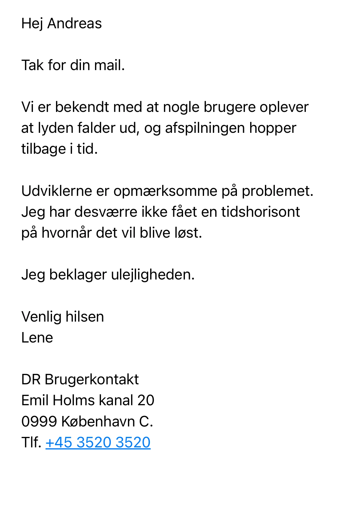 hvad går galt her? Er det DR der har problemer med appen eller er det Sonos der skal rette noget?