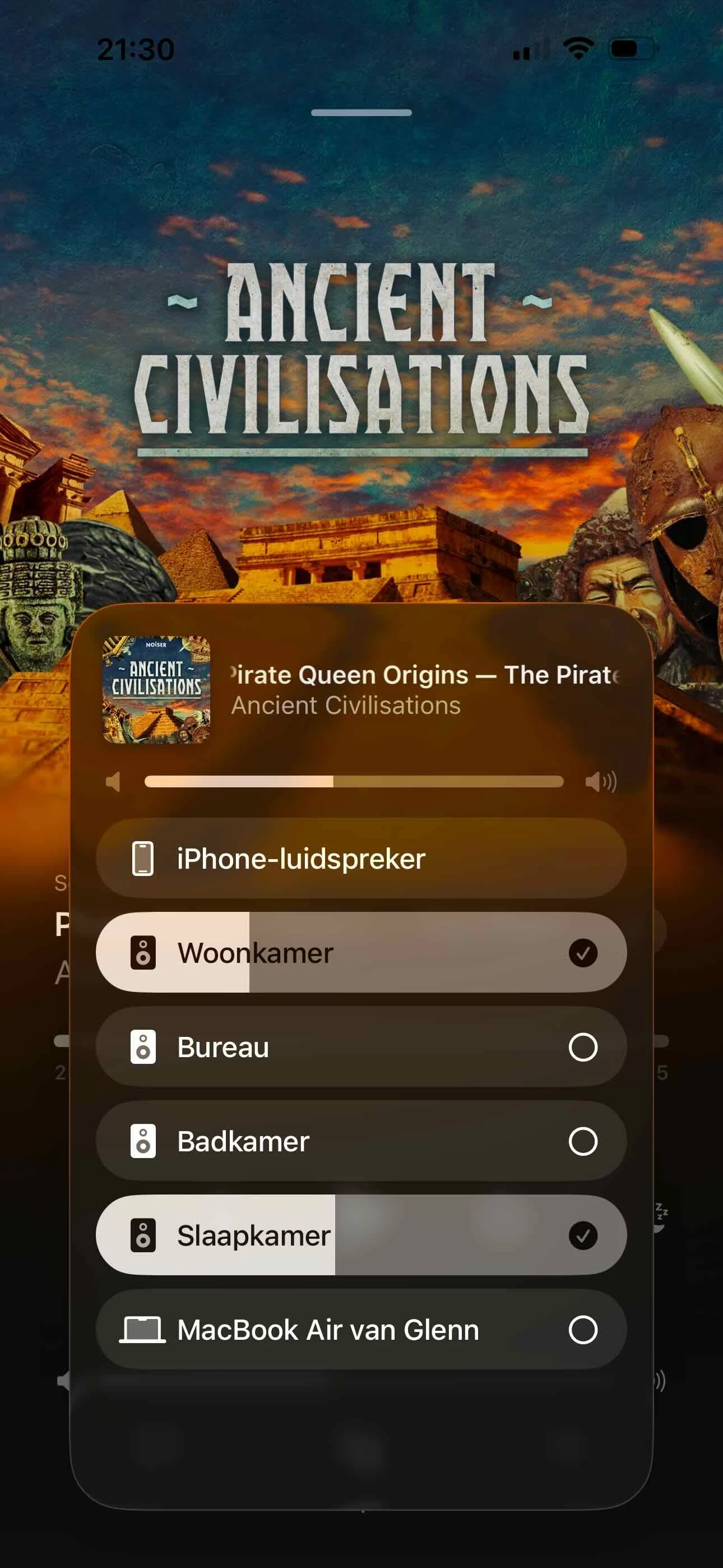 Select one or more Sonos products to stream the same audio across all of them using AirPlay.
