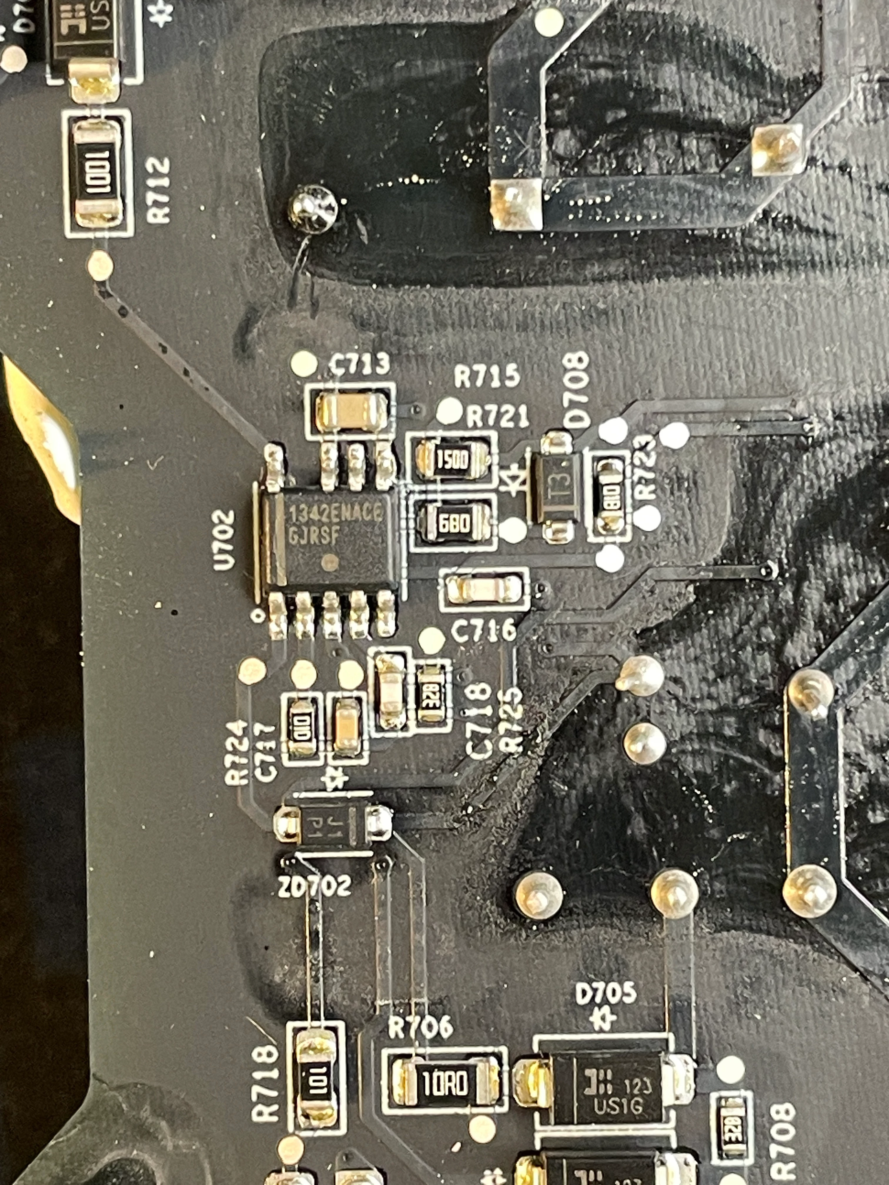 - Capacitor C713 was burned (replaced with 10µF 50V 0805)