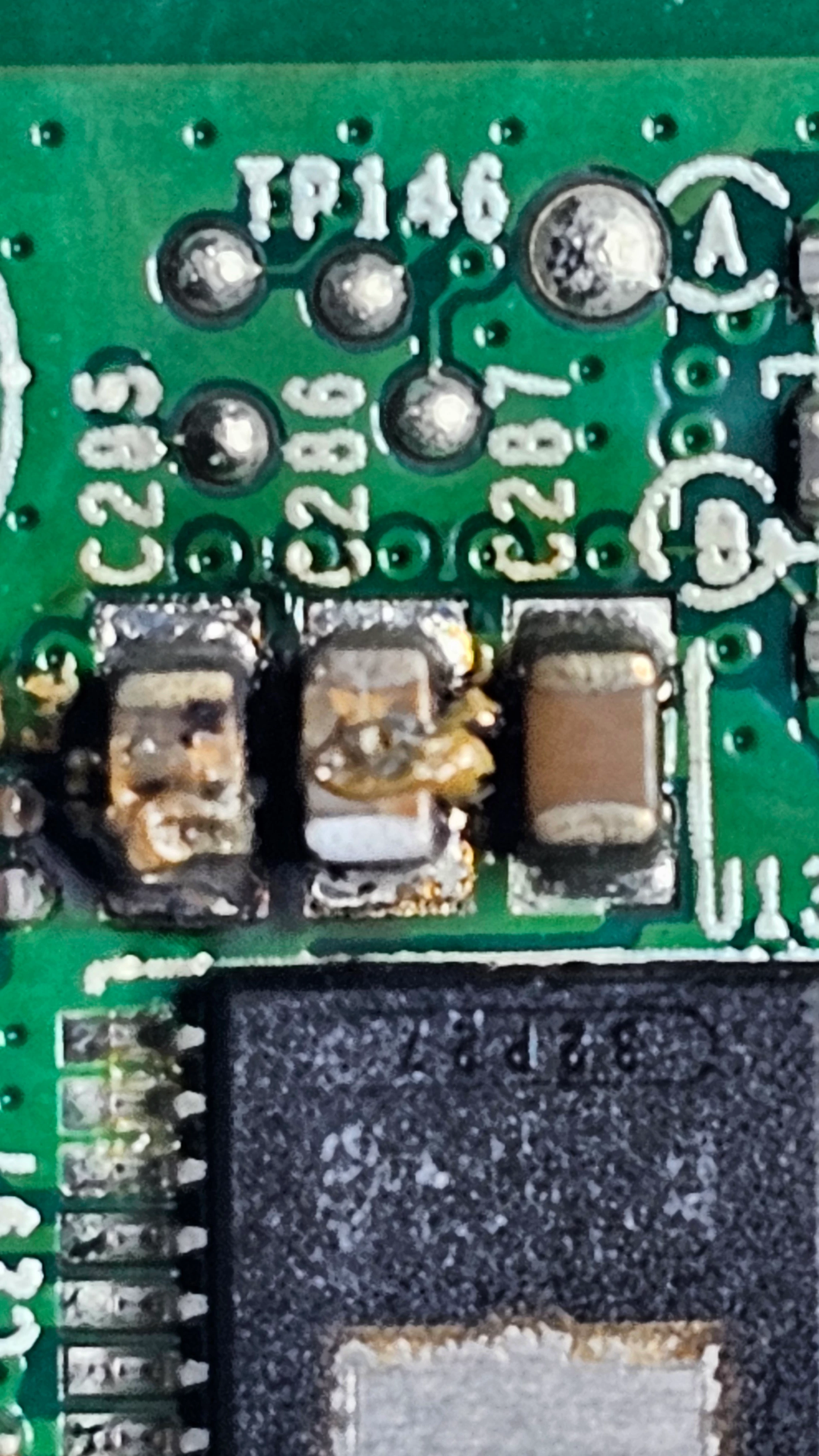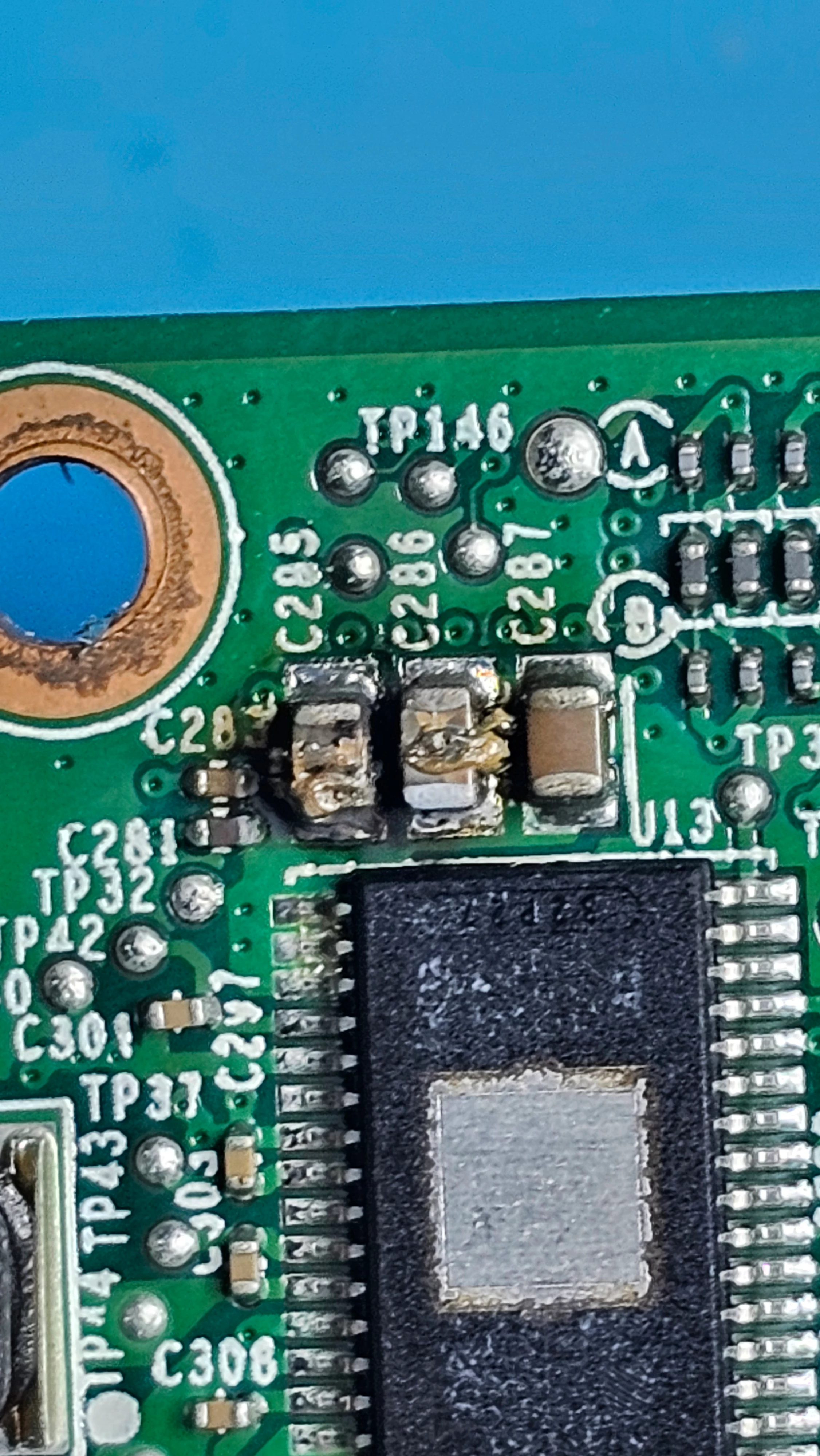 I have 2 burned capacitors c286 and c285 ,does anyone know what values are those and what have caised the issue
