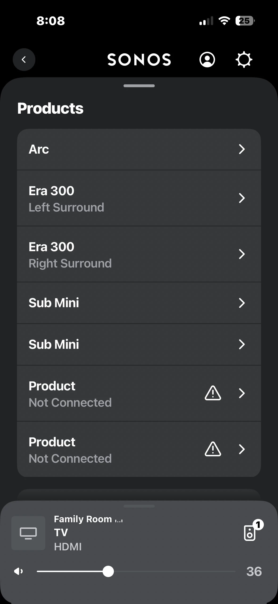 I have two sub mini hooked up to my Sonos Arc and my two Era 300. But my app says subs are not hooked up