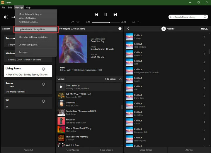 Once the files have been updated, you can then go back to the Sonos app and reindex (Manage >> Update Music Library Now on the desktop app, or Settings >> Music Library >> Scan for New Content on the mobile apps), as before.