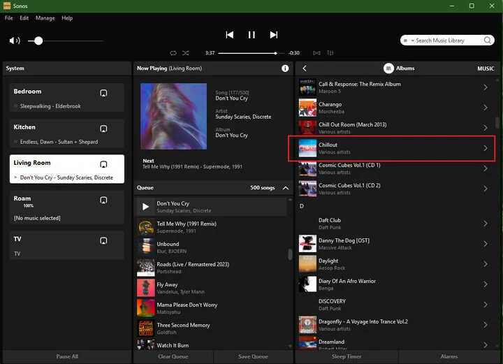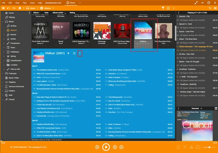 Once done, the “Chillout” album only has one entry in the Album listing: