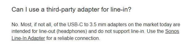 The above was taken from the FAQ on the product page for the Era 100 but is also on all such pages for all Sonos devices that support the adaptors.