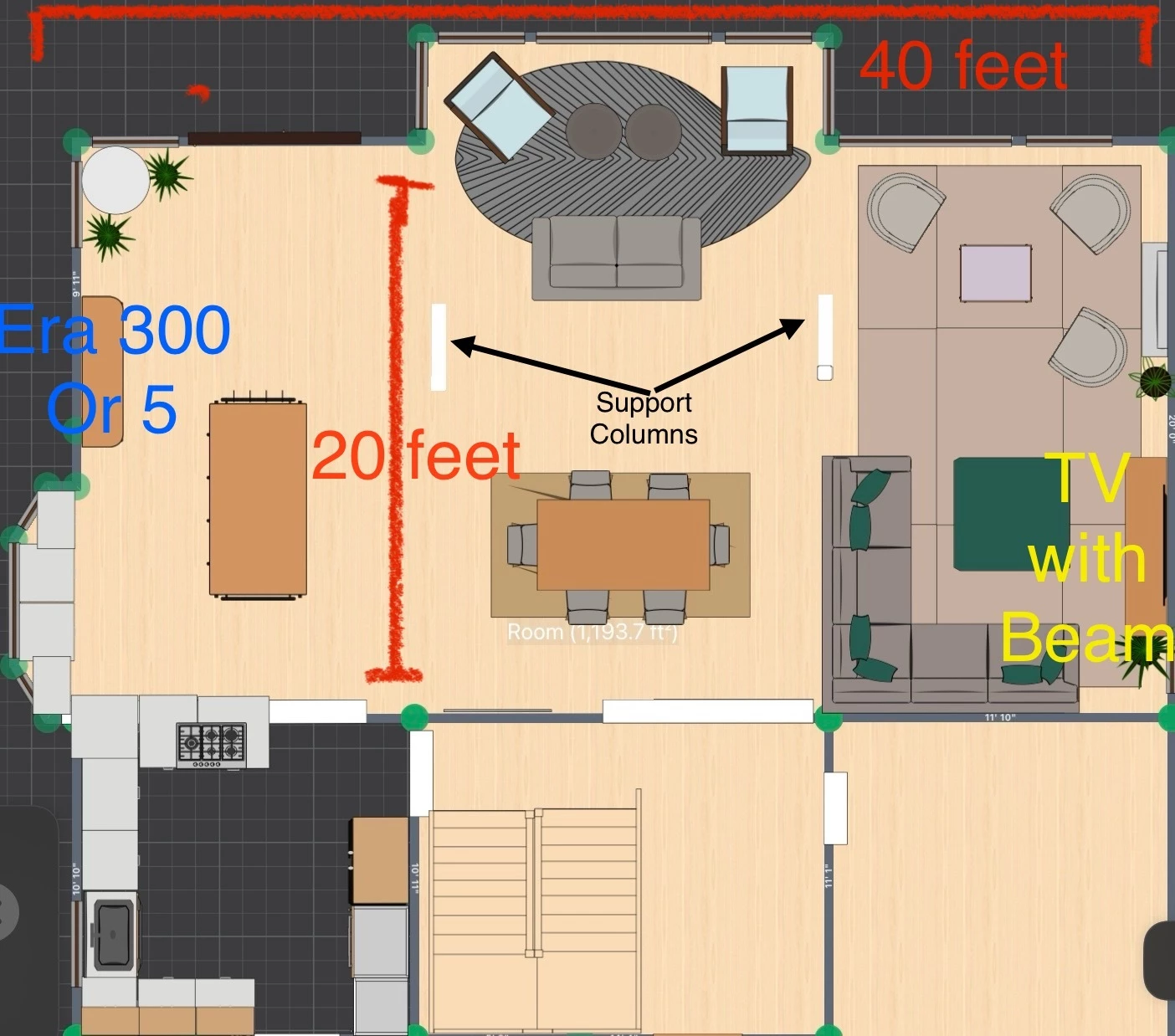 I’m considering buying some Sonos products for the main living area of my home. It’s a 20x40 space with ceilings vaulted from one story to two. There’s a TV on one side that I’d like to get a soundbar for - I’m considering the beam gen 2. We’d like to have a speaker on the other side of the house so we can have music fill the space - I’m considering an era 300 for that.