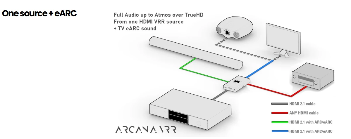 Problem is that the projector is gonna be about 3 meters up in the ceiling 6 meters away from a wall. I don’t want to pull any cables from my projector and all the way to the soundbar (if I’m gonna have a soundbar) so I’ve been thinking about using a Sonos AMP instead with HDMI ARC.