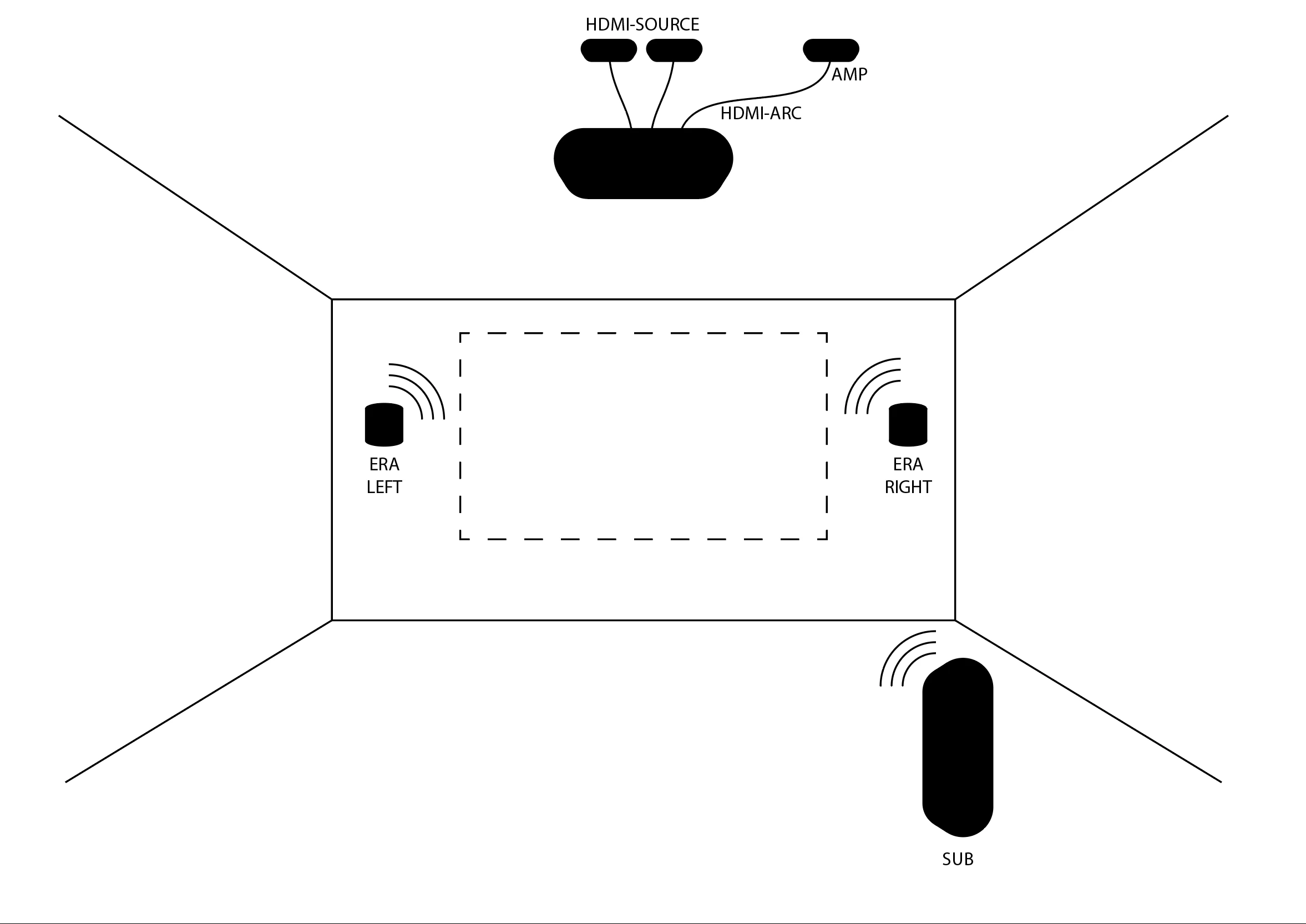 I have started to plan my speaker setup for my living room. Instead of a TV I am gonna have a projector since there is the perfect wall for it. I don’t own any Sonos products yet so I don’t know their limitations and so on.